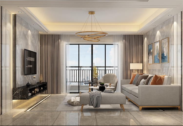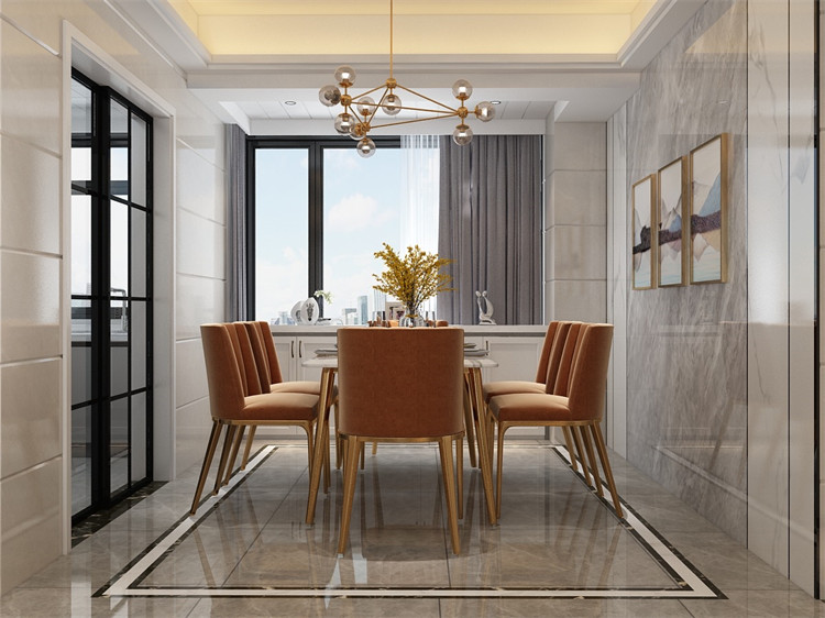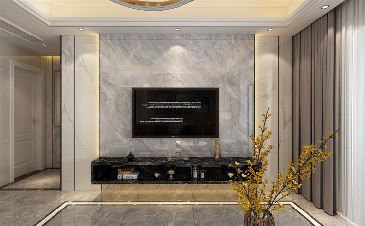 本案例是現代風格,原因是客戶家里常住4口人,有夫妻2人,1個男孩子及1個女孩子,男業主是做物流管理的,經常出差,裝修風格喜歡現代感很強的,還有考慮到小朋友興趣愛好多,喜歡涂涂畫畫,建議了業主墻身貼墻磚,本來業主打算在墻身貼墻布和護墻板,經過一番溝通,最后選擇了墻磚。效果搭配,地面磚采用了高級流行灰結合波打線,空間區域感及功能性更明顯劃分出來,電視背景利用了巖板大板磚,背景主體顏色采用奧特曼灰色與魚肚白間隔,大大增加了空間對比性,用懸空的大理石臺代替了傳統的電視柜,簡潔大方且方便搞衛生,再結合黑色不銹鋼裝飾條點綴收口處理,視覺感非常強。整個裝修過程中,業主只去了5次現場,大部分時間都是在微信和電話溝通,最后現場按效果圖1:1還原出來,實景圖比效果圖更有質感,業主非常喜歡,還推薦了朋友給我們裝修。