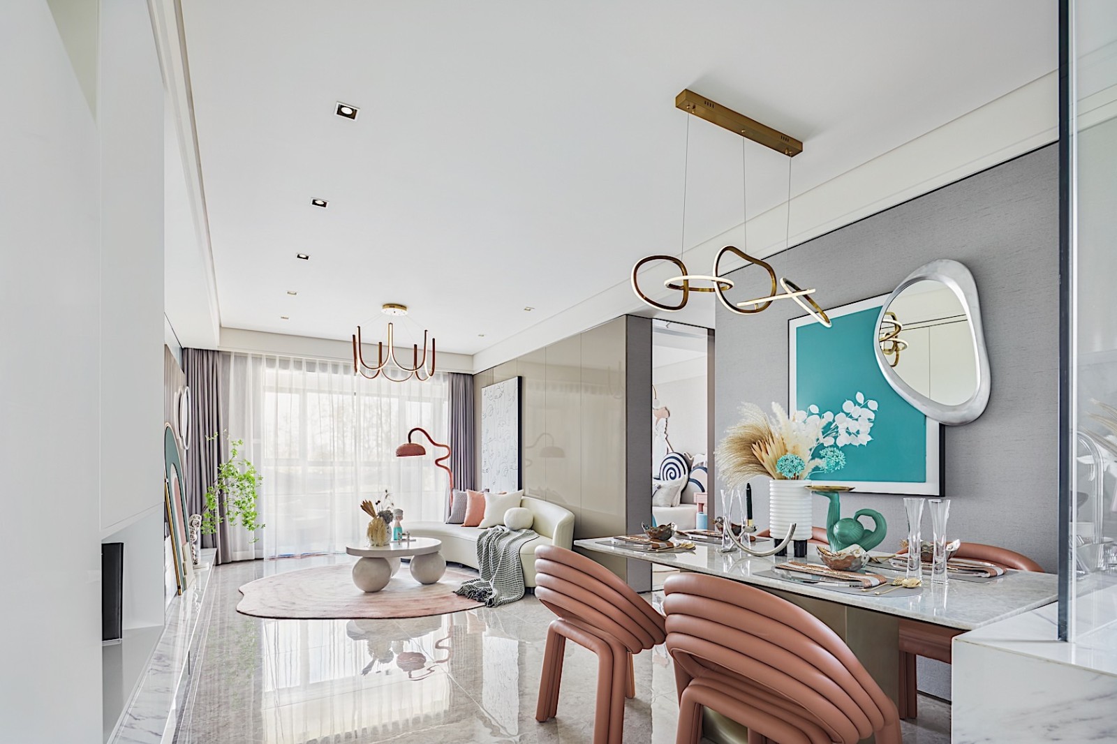 輕奢風格100平米以下三居室