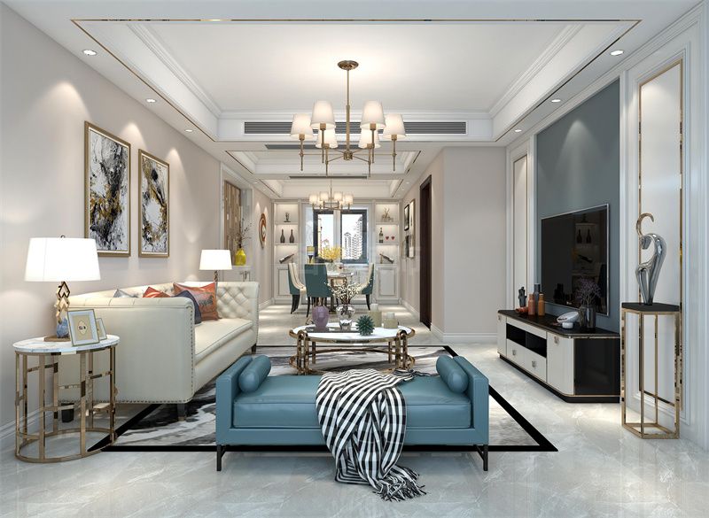 輕奢風格100平米以下三居室