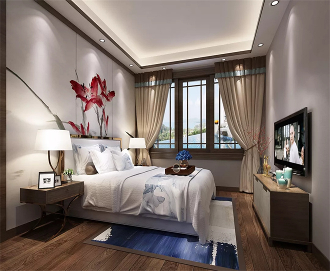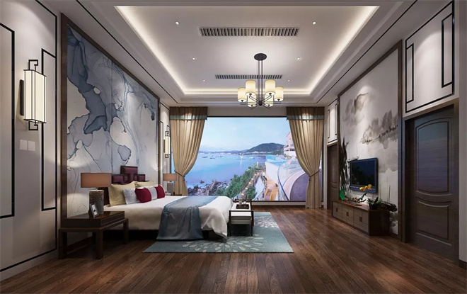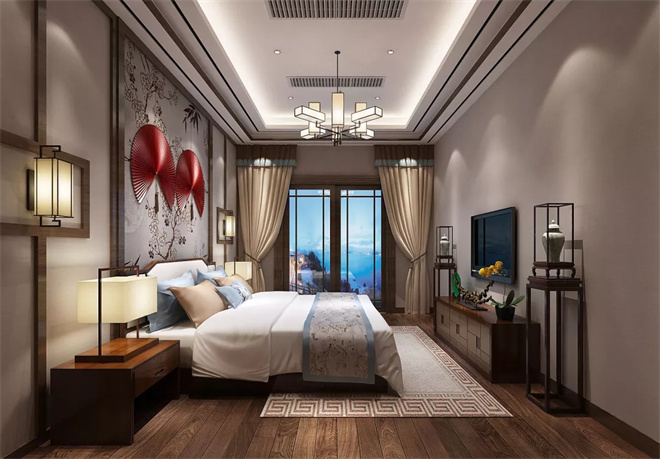 新中式臥室作為現代背景下的古典演繹,呈現出不同的風雅意境,寧靜致遠專屬于中國的美學