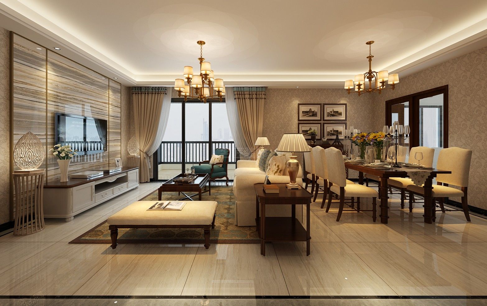 紅河哈尼族彝族自治州101-200平米美式風格驪都國際裝修設計效果圖