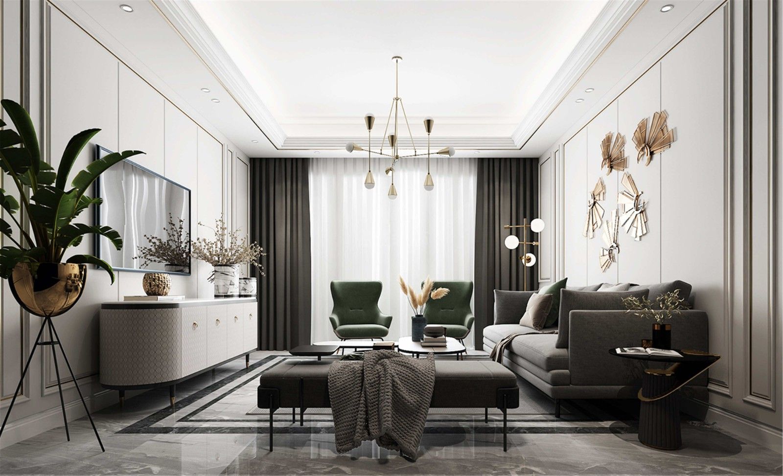 遂寧帝一江岸三居輕奢風格裝修效果圖