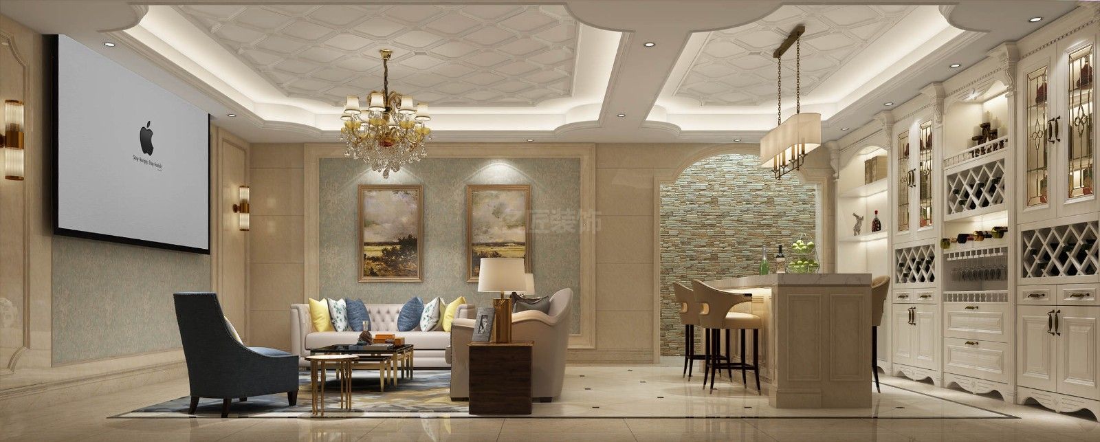 海口江畔花園別墅歐式風(fēng)格裝修效果圖