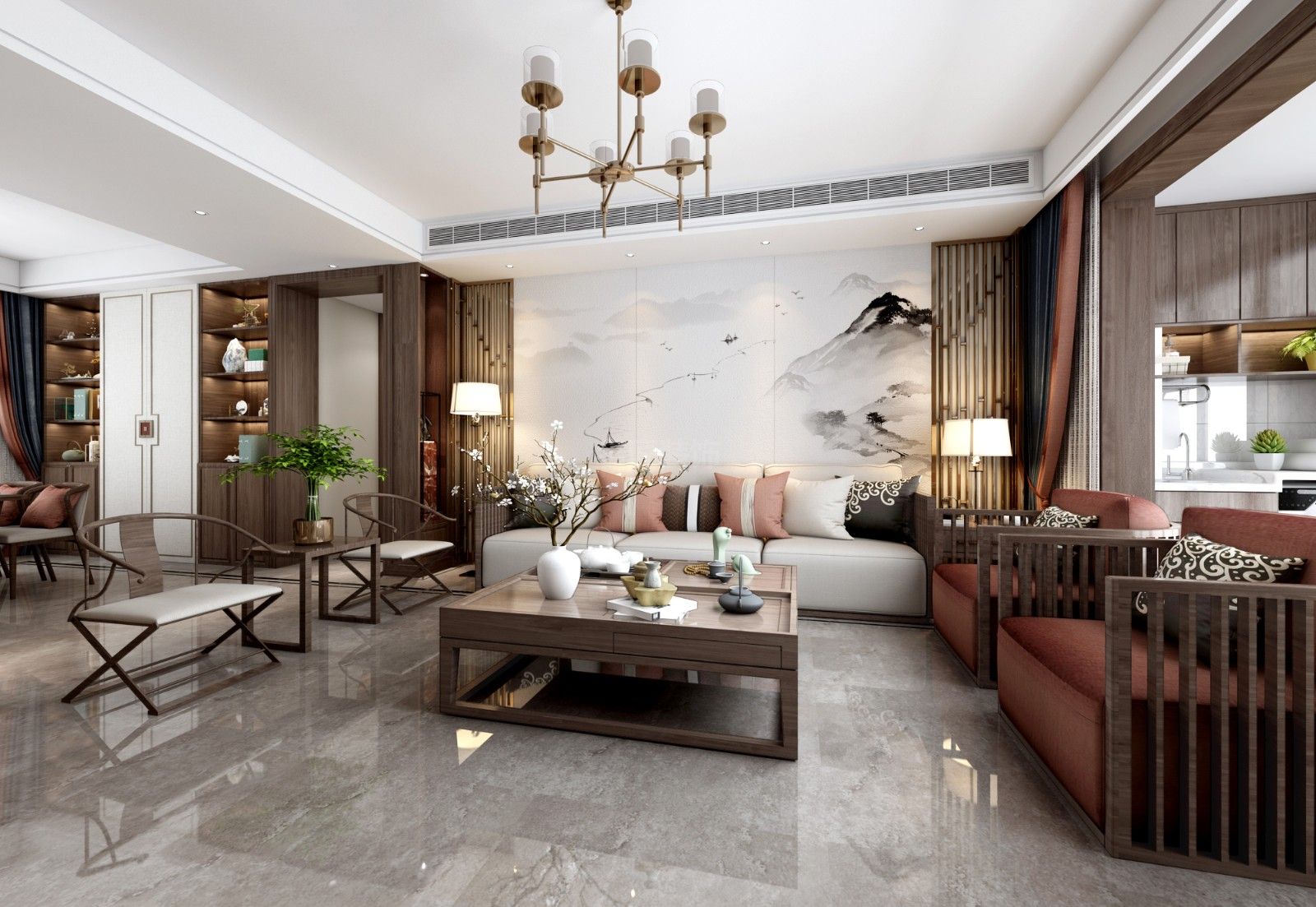 江門201-300平米新中式風格白云尚城室內設計效果圖
