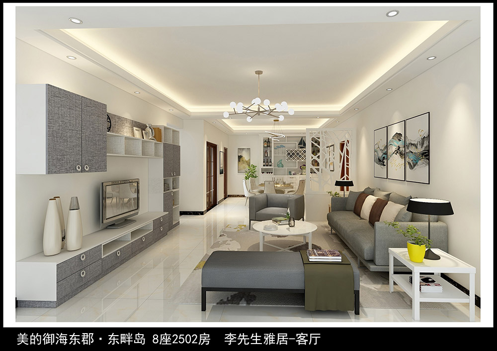 佛山美的御海東郡三居現代簡約風格裝修效果圖