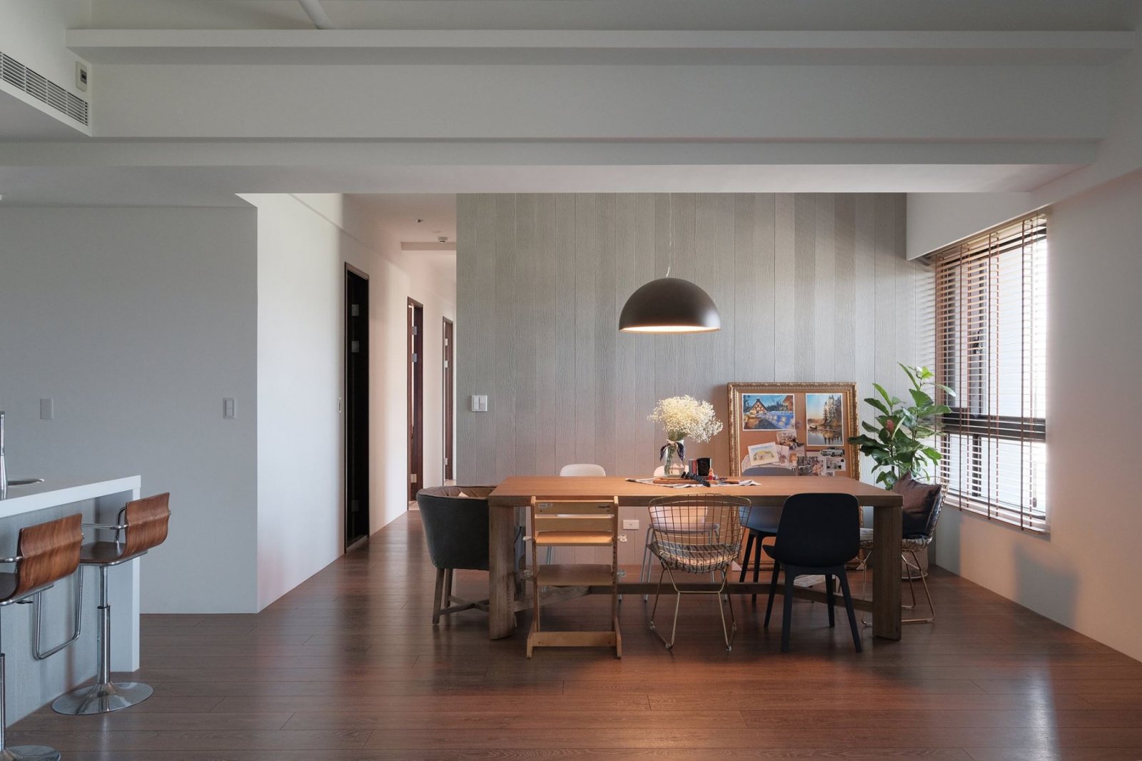 室內餐廳裝修效果圖,內嵌式餐廳柜,收納日常使用的餐廳物品,錯落有致的格子,更是一種簡約的美。