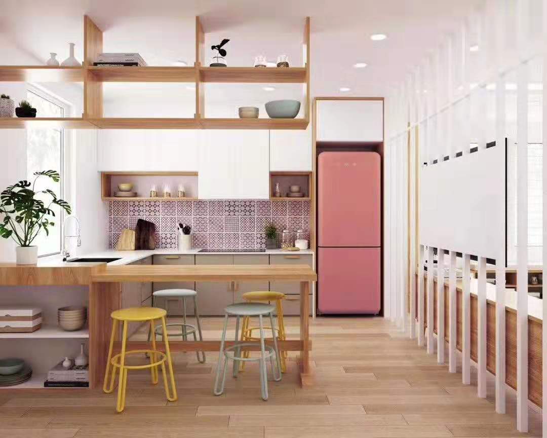 原木色的五行為木,而廚房五行屬火,符合木生火的風(fēng)水之道。