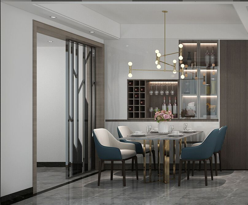 4、餐廳和其他房間一樣,格局要方正,不可有缺角或凸出的角落。長方形或正方形的格局。餐桌不可正對大門,若真的無法避免,可利用屏風擋住,以免視覺過于通透;餐廳天花板不宜有梁柱,若建筑物的結構無法變動,則可在梁柱下懸葫蘆等飾物,避免它直接壓到餐桌。