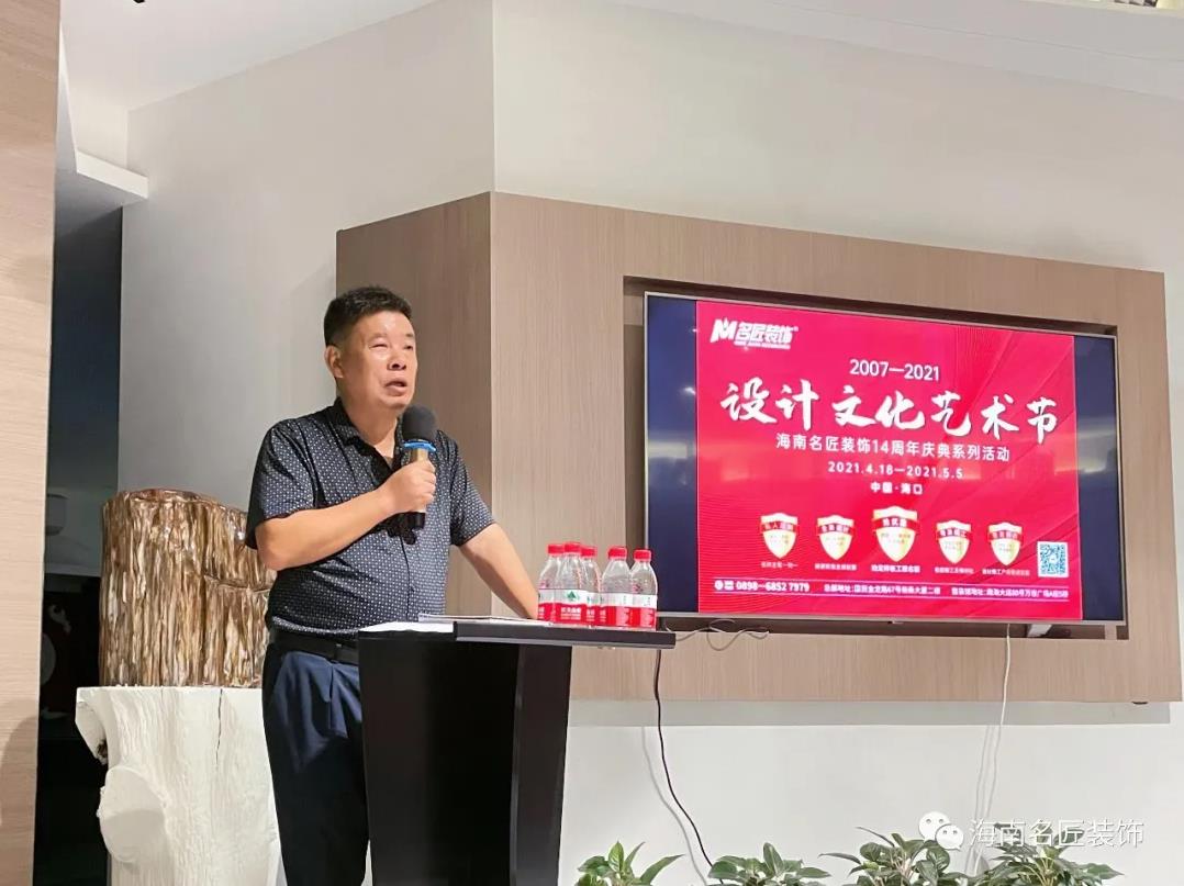 最后張紅英總經理就海南公司十四年以來,打造學習型企業的宗旨,深刻解讀了文化、知識、文明的深刻內涵,以她自己用《致橡樹》來支撐愛情和家庭的信念,以“和光同塵”行走在裝修這個高尚而平凡的事業當中,用“人間正道是滄桑”來抵抗人間的坎坷和艱辛等等的文化理念和大家分享文化修養的重要性,也深深的寄予名匠裝飾在所有的家人們的共同努力下成為一個具有真正價值的公司,而不是一個價格公司!更期望所有的名匠人都能成為一個有知識、有文化的文明的名匠人!